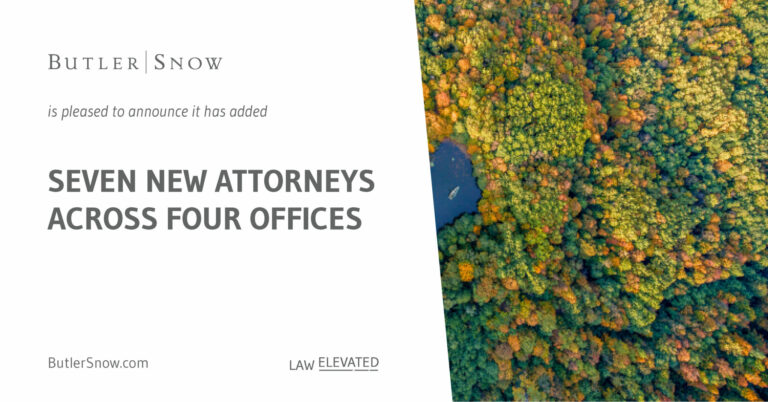 Seven attorneys have joined Butler Snow LLP in four offices across the firm’s footprint, including Austin, Texas; Memphis, Tennessee; Nashville, Tennessee; and Ridgeland, Mississippi.