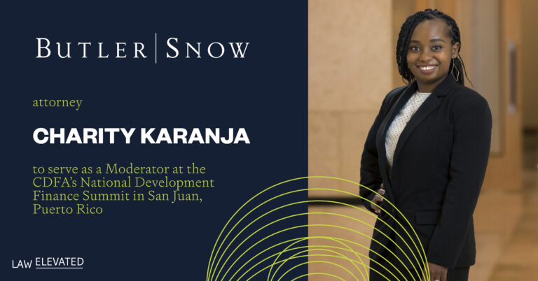 Butler Snow attorney Charity Karanja will serve as a moderator at the 2025 National Development Finance Summit, hosted by the Council of Development Finance Agencies (CDFA) in collaboration with Grow America (formerly NDC), taking place October 8-10 in San Juan, Puerto Rico.