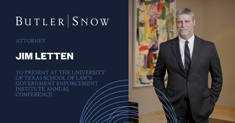 Butler Snow attorney Jim Letten of our New Orleans office will—for the 11th consecutive year—present at The University of Texas School of Law’s Government Enforcement Institute Annual Conference in Dallas, Texas, on September 18 and 19.
