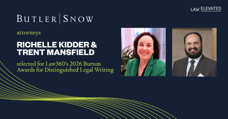 Butler Snow LLP is pleased to announce that attorneys Richelle W. Kidder and Trent A. Mansfield have been named recipients of Law360’s 2026 Distinguished Legal Writing Awards, as part of the Burton Awards Program.